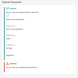 If there are any ‘DIETARY’ needs tick the box.