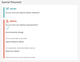 If there are any ‘MEDICAL’ needs tick the box.